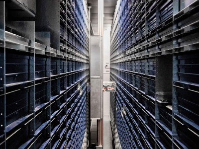 Bei korrekter Identifizierung wird der Roboter aktiviert, der das Fach über ein Terminal ausgibt. Die Mitarbeiter im Büro haben keine Schlüssel oder Codes, um die Tür zum Tresorraum zu öffnen. Der tägliche Betrieb des Tresor-Automaten erfordert kein Öffnen seiner Tür. Die Tür zu unserem SafeStore Auto ist die ganze Zeit verschlossen. Das Innere des Tresors ist das Königreich des hier gezeigten Roboters.